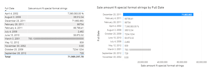 动态格式字符串,也称为单元格级格式,使用户可以为每个度量数据点设置不同的格式字符串。因此,柱形图中的每一列或表中的每一行都可以采用不同的格式。