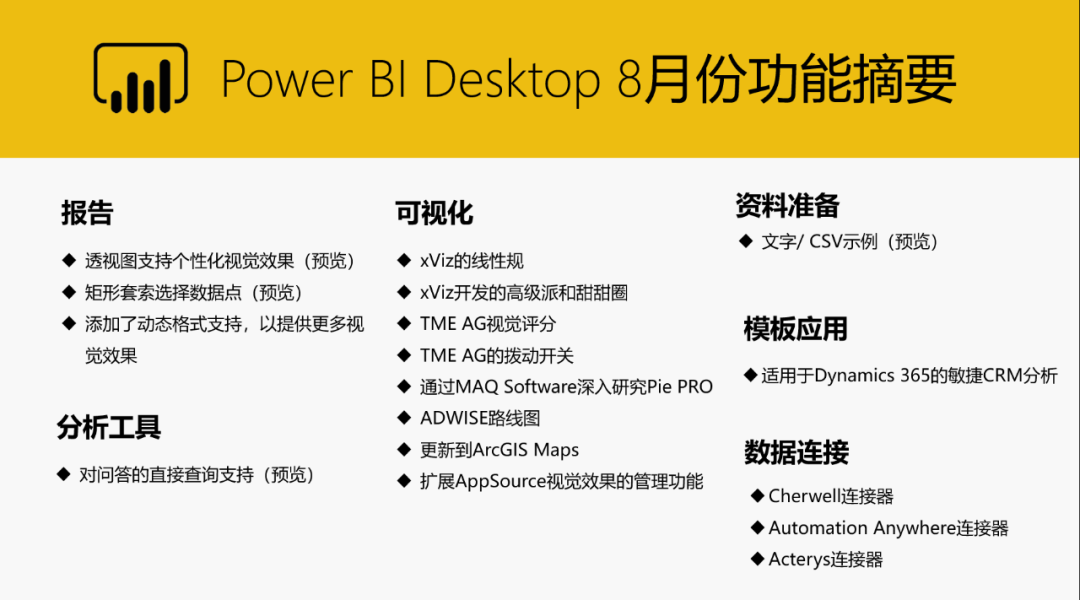 Power BI 8月主要功能更新:
