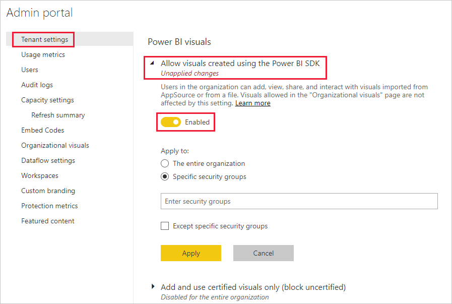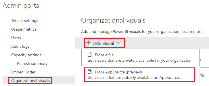 本月更新Power BI项目组表示正在扩展与AppSource视觉效果有关的Admin功能。现在可以在管理门户中管理AppSource视觉效果。