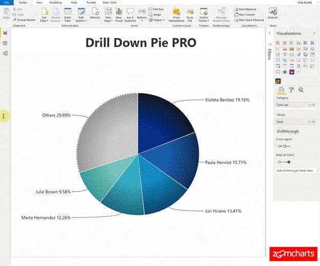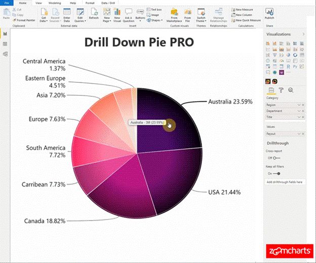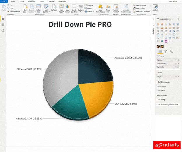 Drill Down Pie PRO已经是ZoomCharts Advanced Visuals套装中的第8个视觉组件,最近已将其更名为Drill Down Visuals。