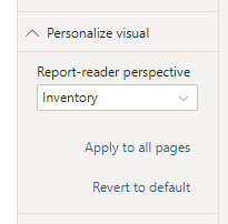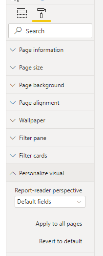 将新的透视图保存到模型并保存Power BI报表后,导航到页面的“ 格式”窗格,其中有一个用于“ 个性化视觉效果”的新部分。
