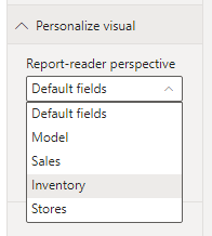 作为回顾,Personalize visuals是一个预览功能,它将使您的最终用户可以对阅读视图中的可视化进行内联调整。例如,您的最终用户可以更改度量或维度或添加图例。以前,如果您有一个大型数据模型,则无法选择一个更易于管理的子集字段,以使模型中的所有字段都不会使报告阅读器不堪重负。现在,在此版本中,增加了对Personalized visuals的Perspectives支持,这将使您能够选择提供更集中视图的模型子集。