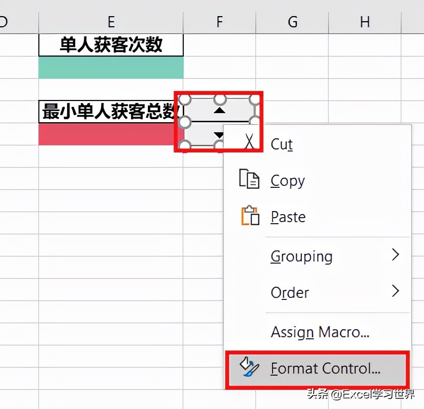 6. 选中控件 --> 右键单击 --> 在弹出的菜单中选择“设置控件格式”