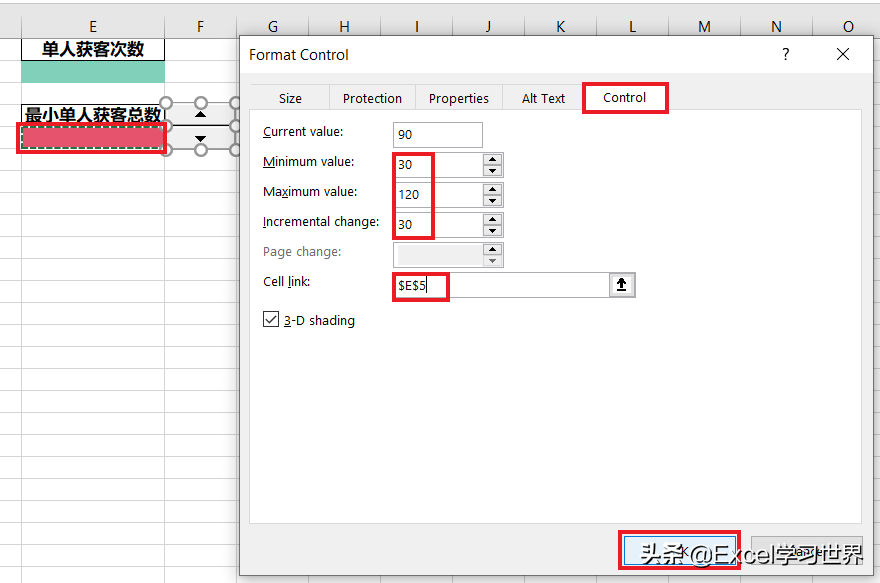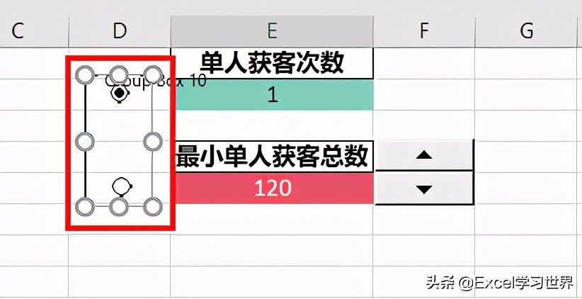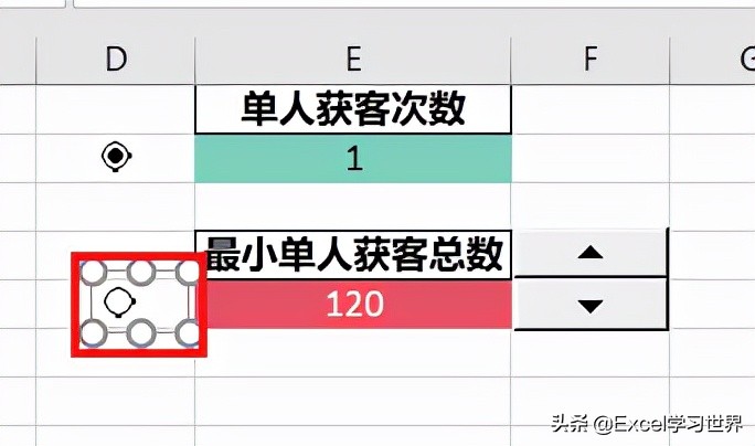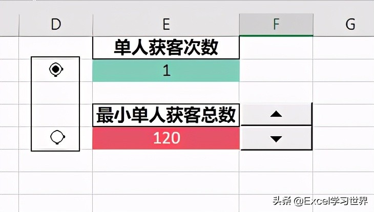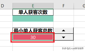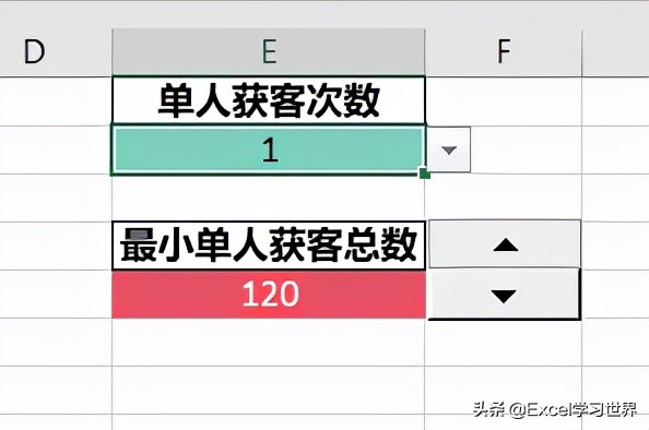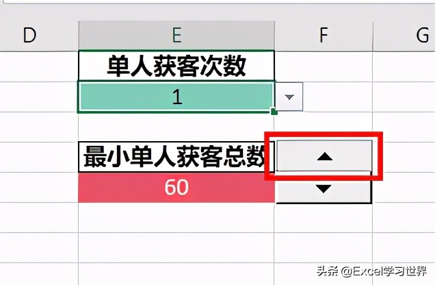 现在点击控件的上下箭头, E5 单元格内的数值就会以规定的步长增加或减小。