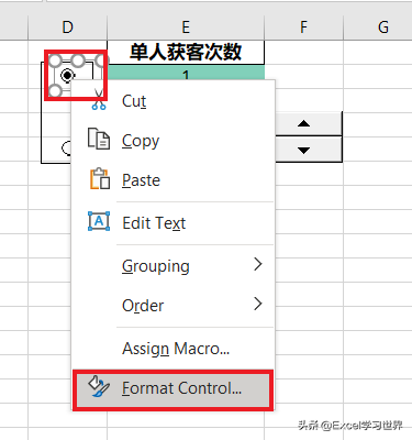 16. 选中上面那个选项按钮 --> 右键单击 --> 在弹出的菜单中选择“设置控件格式”