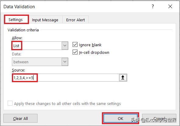 3. 在弹出的对话框中选择“设置”选项卡,按以下方式设置 --> 点击“确定”: