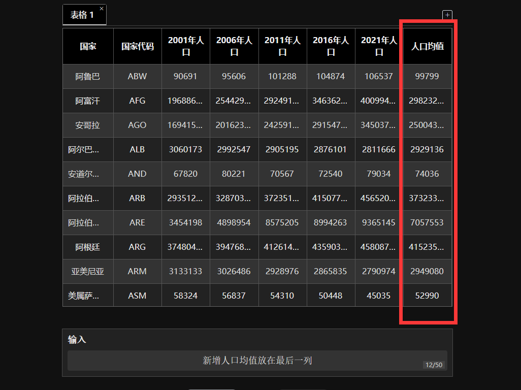 比如「新增人口均值放在最后一列」。