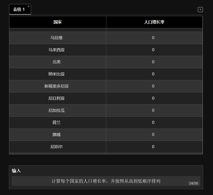 比如上面那张人口增长的图表,机哥让它算算「增长率」并排序。
