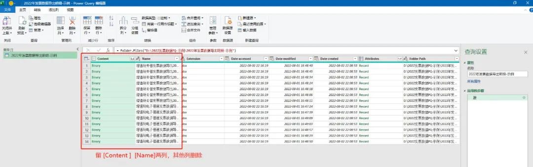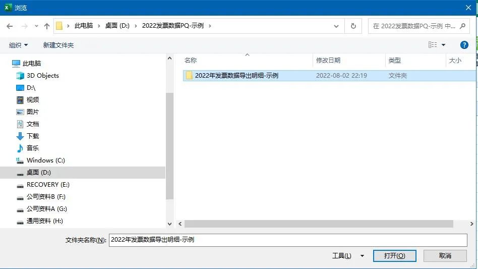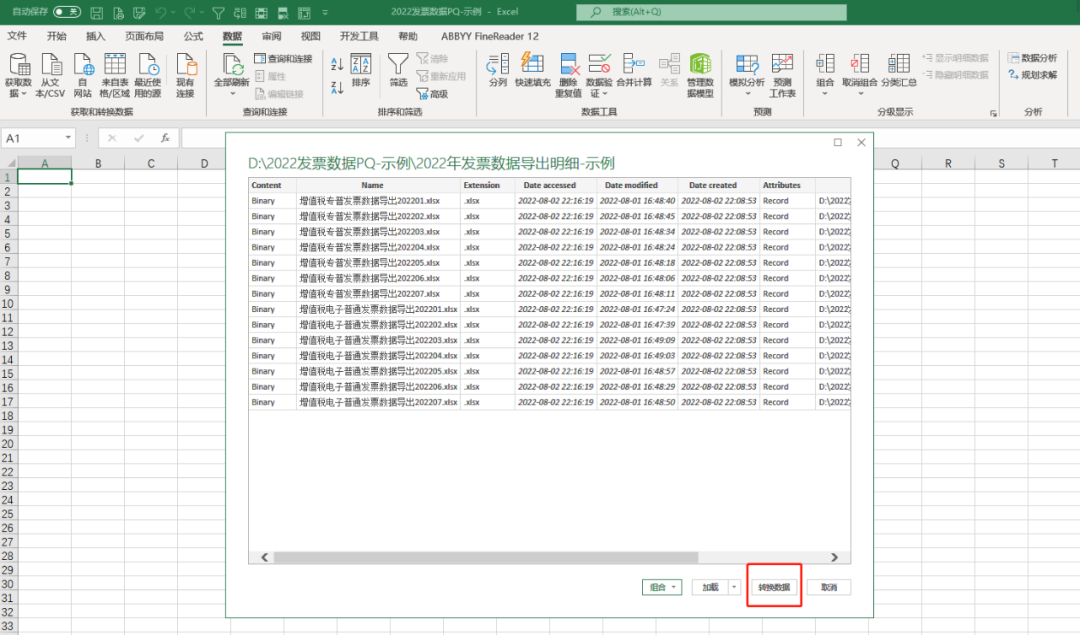 新建的Excel文件【2022发票数据PQ-示例】,同时导入文件夹【2022年发票数据导出明细】