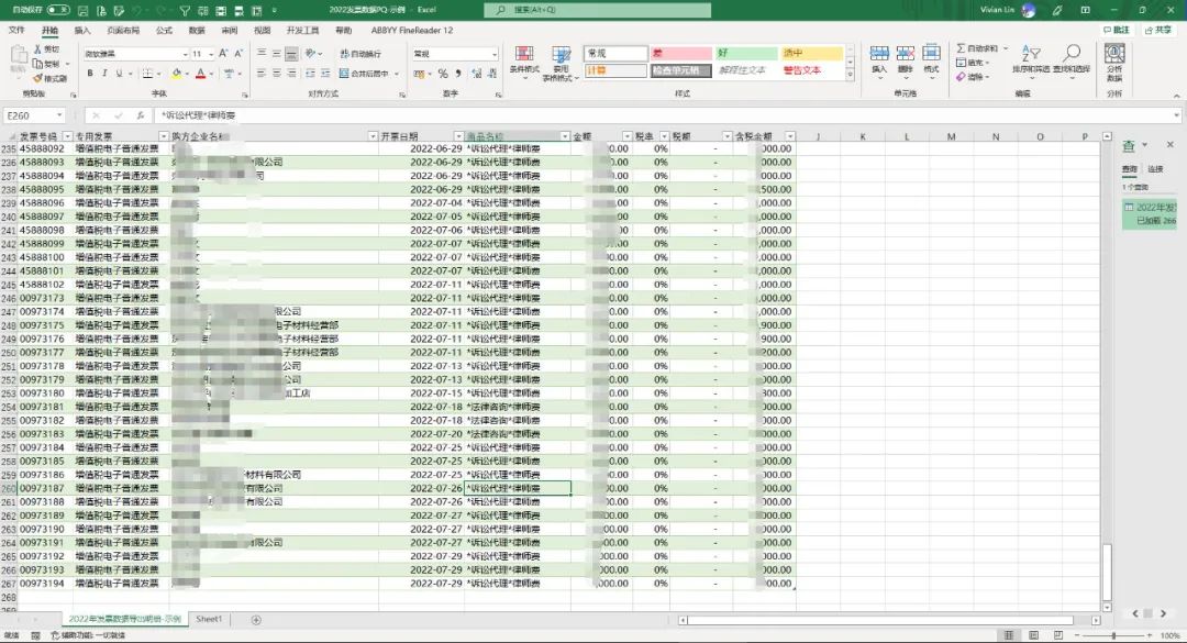 后续每月的数据保存至文件夹【2022年发票数据导出明细】,然后打开【2022发票数据PQ-示例】,即可以一键合并加载到【2022发票数据PQ-示例】表中,通过整理合并后的表格,我们就可以从多维度去做数据分析、财务分析。