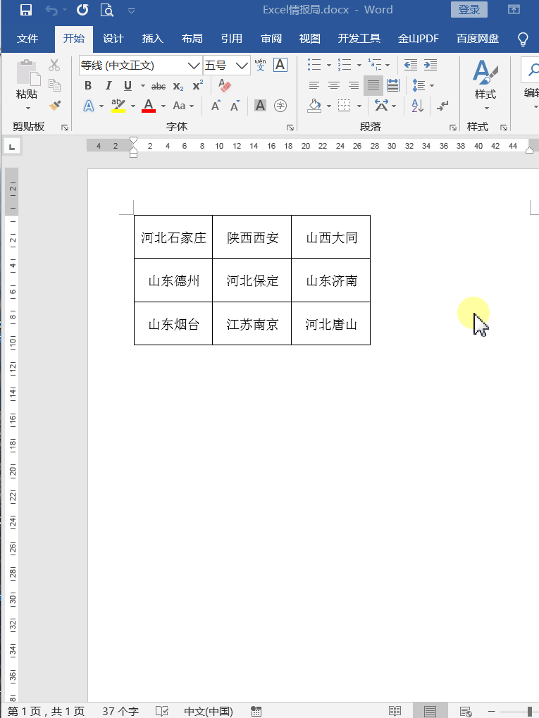 首先将Excel中内容复制到Word文档中,如下图所示: