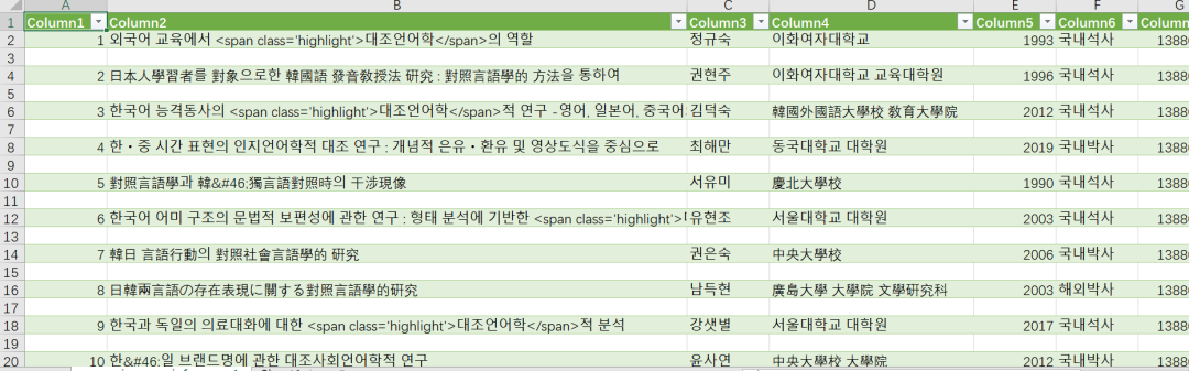 看上去还是比较清爽的,如此一来,中文乱码的问题就迎刃而解了。之后你就可以进行进一步的转存为标准的Excel文件或者进行数据处理都可以。