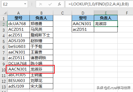 看来单纯使用 vlookup 是行不通的,那么我们试试 lookup+find 函数。