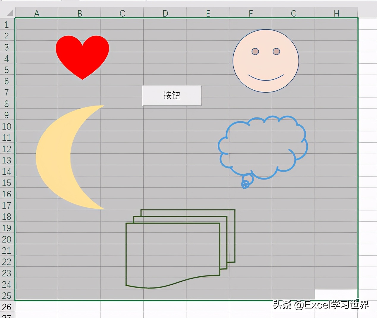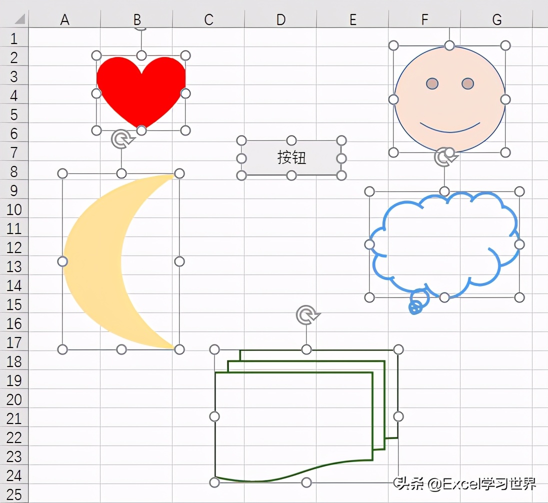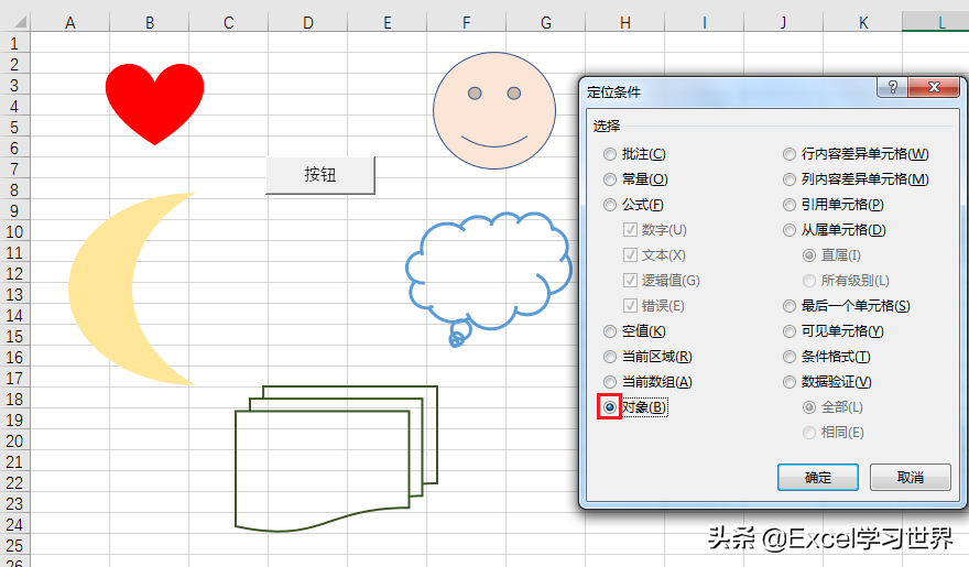 1. 首先我们先了解一下什么是对象?比如形状、文本框、图表、控件、图片等等,这种无法写入单元格的内容,就是对象。