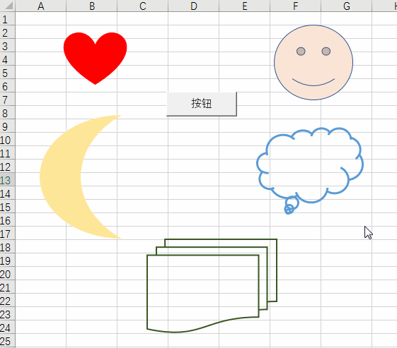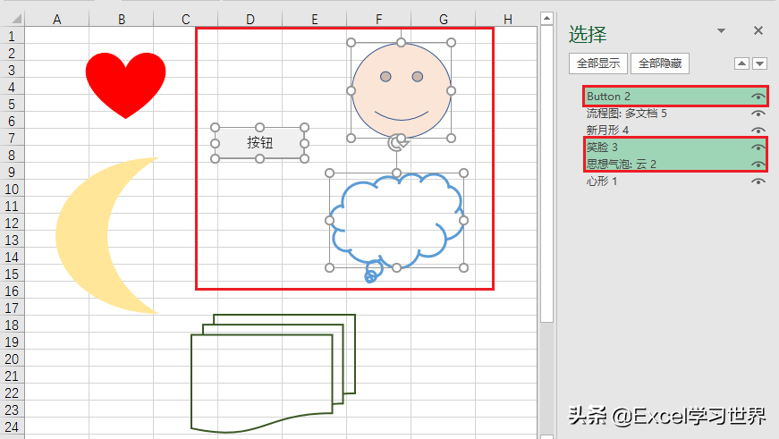 2. 既然对象都不能写入单元格,所以用普通的方法也无法正常选中它们。