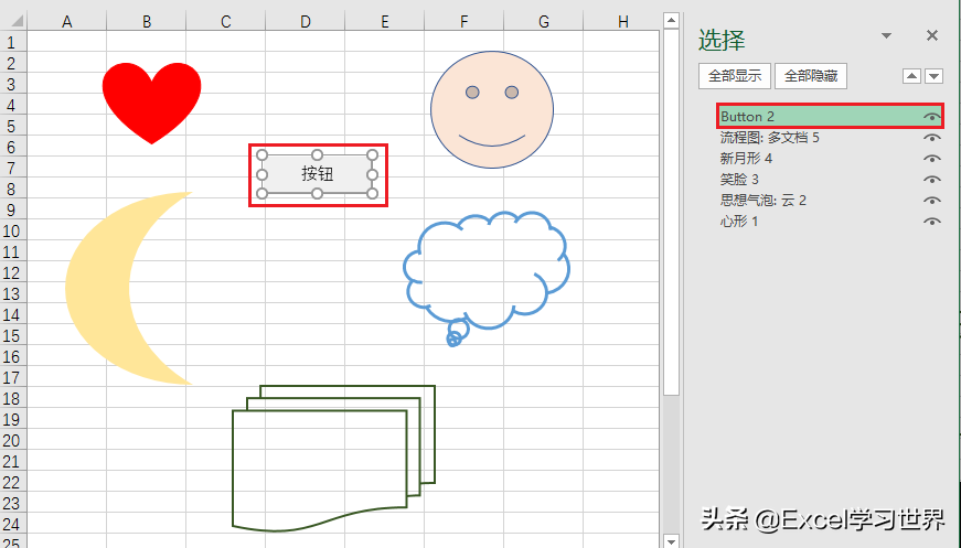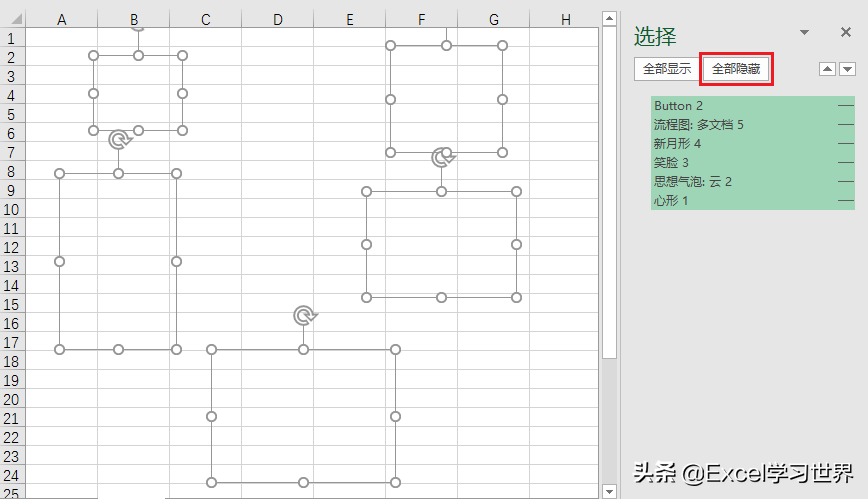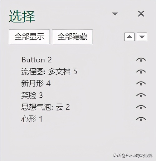 大家可能也发现了,在“选择”区域有两个按钮,可以分别显示和隐藏所有对象。