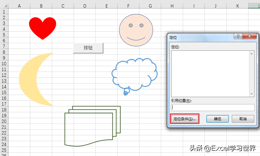4. 按 F5 或 Ctrl+G --> 在弹出的对话框中点击“定位条件”按钮