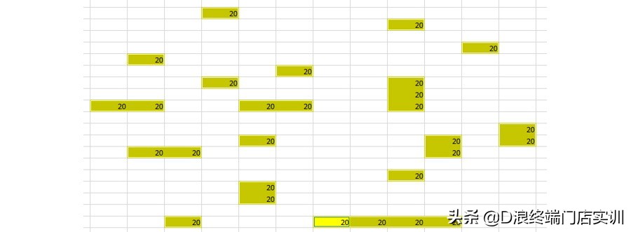 看到这里,您可能在问,选中黄色单元格的目的是什么呢?其实主要是为了做进一步的数据处理的操作,比如把黄色单元格中批量输入数值20。