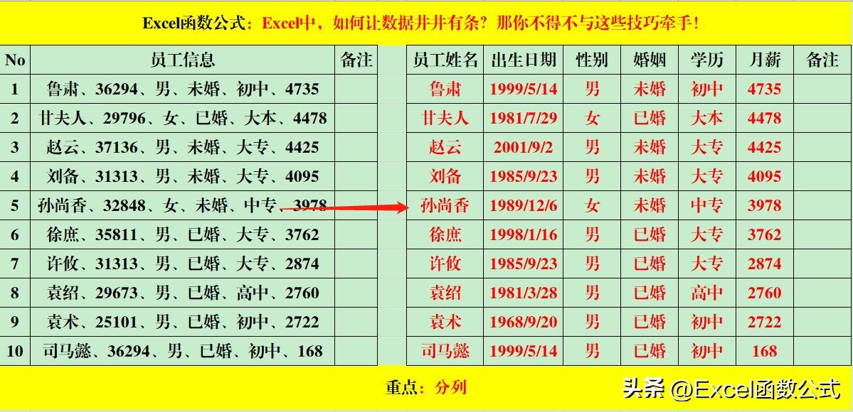 在Excel中,如果数据太乱或者不规范,对于处理的处理将会非常的麻烦,那如何使数据井井有条?如何使数据变得规范或易处理?就不得不与这些技巧牵手!