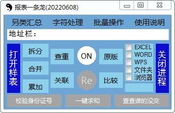 除了这些分分合合的操作,【报表一条龙】还提供了强大的字符和数据处理功能,用于对拆分或合并后的表格内容进行处理,这样每一级单位或部门都可以用【报表一条龙】来减轻很大的工作量,实现表格处理一条龙服务、上下级一条龙服务,这就是【报表一条龙】名字的由来。