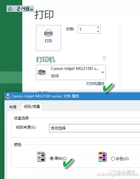 在打印设置窗口中,如果将打印质量选项的“颜色”选择为“黑白”打印,由于节省了彩色原料,可以大大节省墨水或墨粉的成本。同时,由于黑白打印速度要远远高于彩色,因此还提高了打印效率,节省了时间。