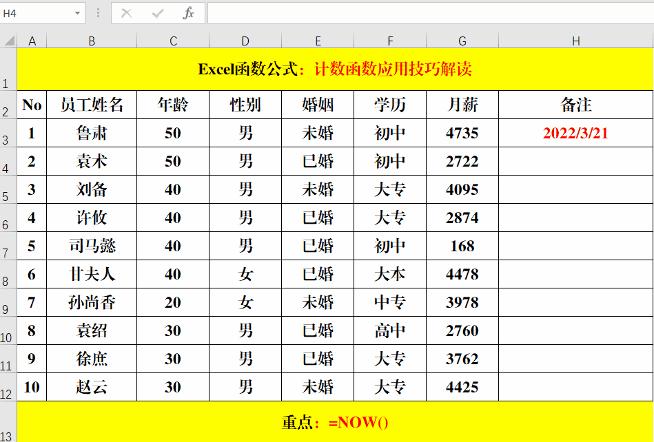 语法结构:=Now()。