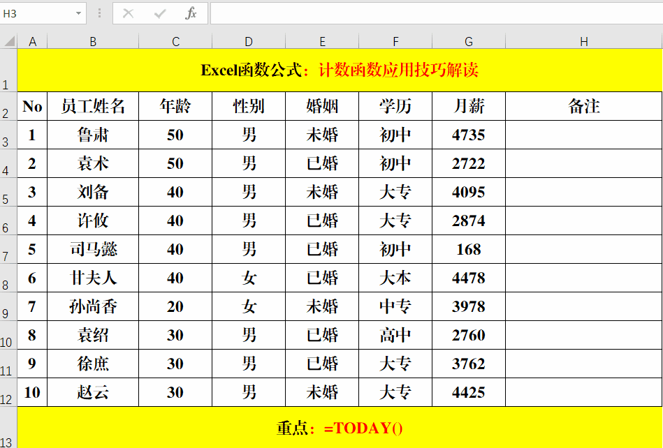 语法结构:=Today()。