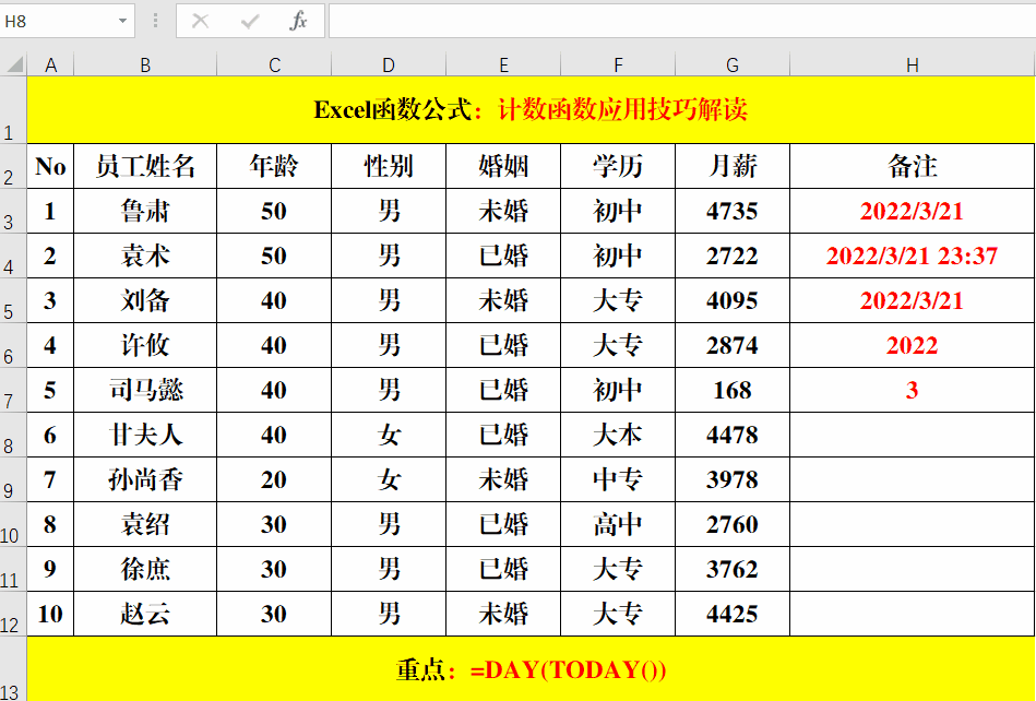 语法结构:=Day(日期)。