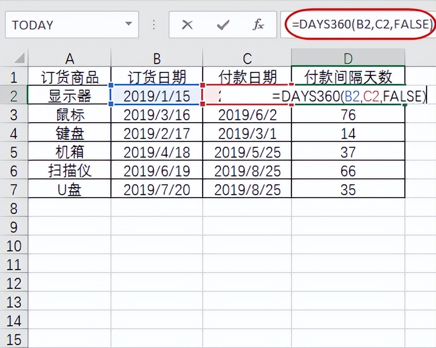 功能: 把1年当作360天来计算,返回两日期间相差的天数