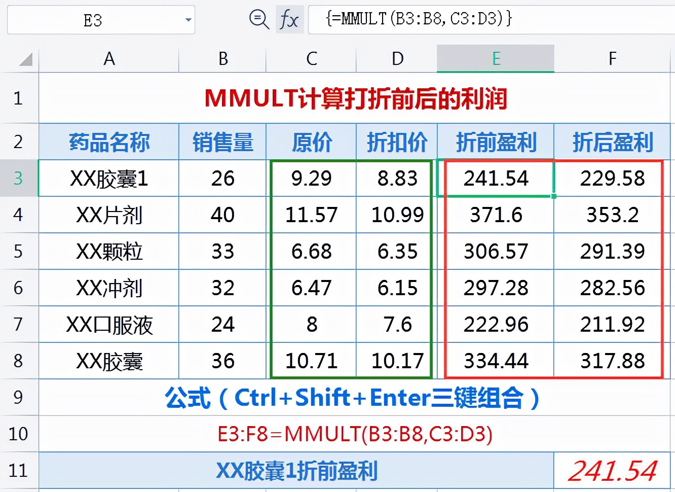 四、MMULT函数案例实践:计算不同单价的药品利润