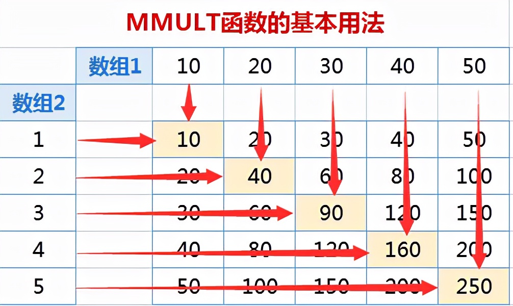 MMULT两矩阵相乘的过程是:用第一参数的元素分别乘以第二参数对应的元素,然后将结果相加得到最终结果。为了让大家真正理解MMULT函数的计算过程,请看下图。