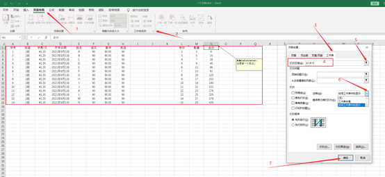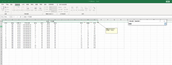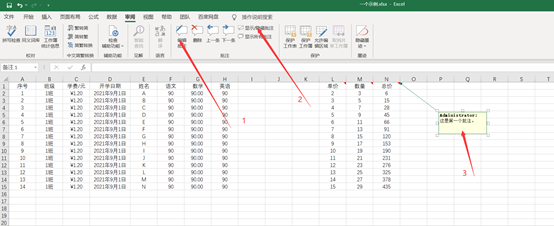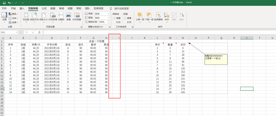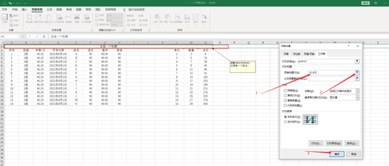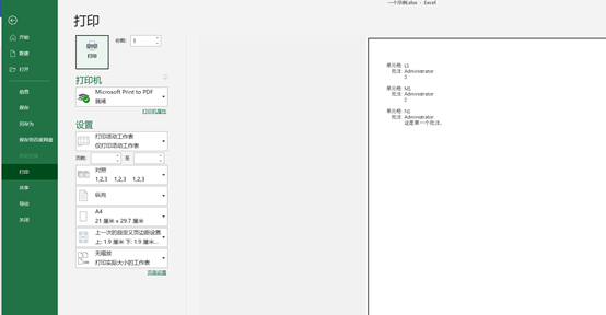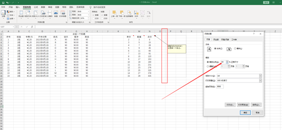 ①若要连批注页打印出来,则先查看好整个打印的内容的单元格区域是多少。