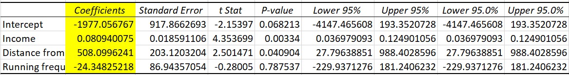 如前所述,变量running frequency的p值大于0.05,因此让我们从分析中移除该变量来检查结果。