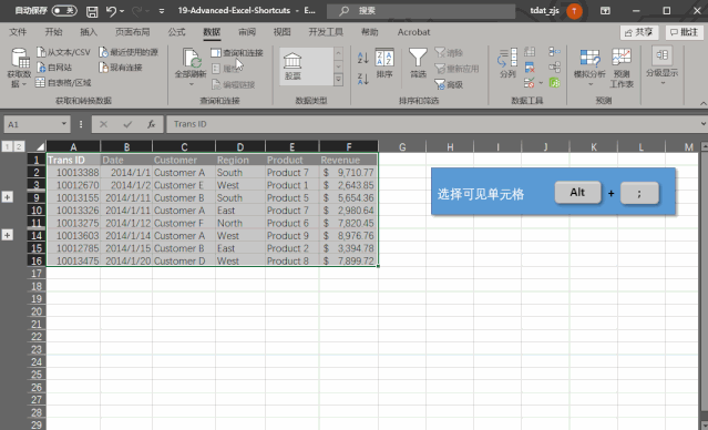 可能那些被你隐藏的行或者列的数据,就是你暂时不打算使用的数据。在这种情况下,如果你只想选择那些可见的单元格,那在选中目标区域后,只需要按下Alt + ; 就可以排除那些不可见的单元格。