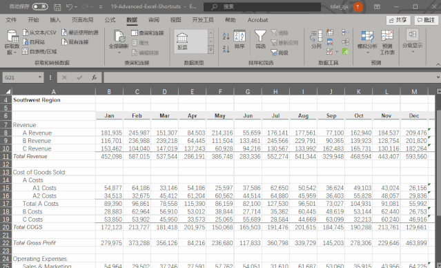 当你需要将两行或者两列以上的数据组合在一起,只需要选中需要组合的数据,按下 Shift + Alt + →就能将它们组合在一起。反之,只需要按下 Shift + Alt + ←就可以取消组合。