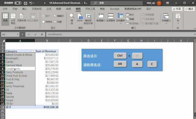 如果想要清除这些筛选条件,只需按下 Alt,再按 A, 最后按 C.