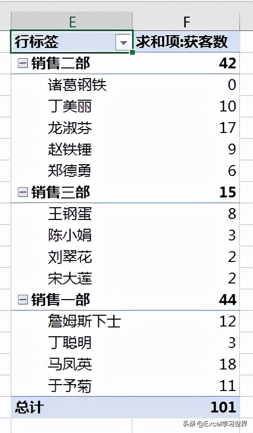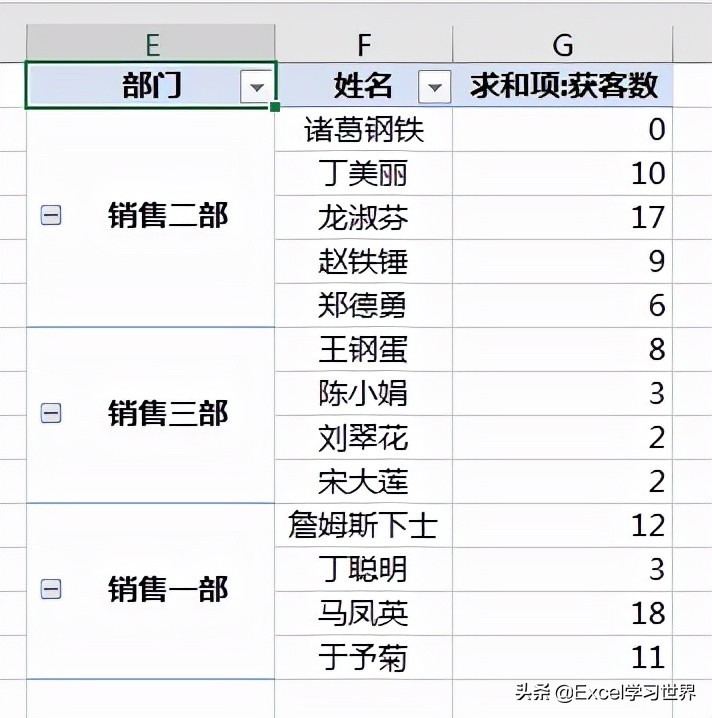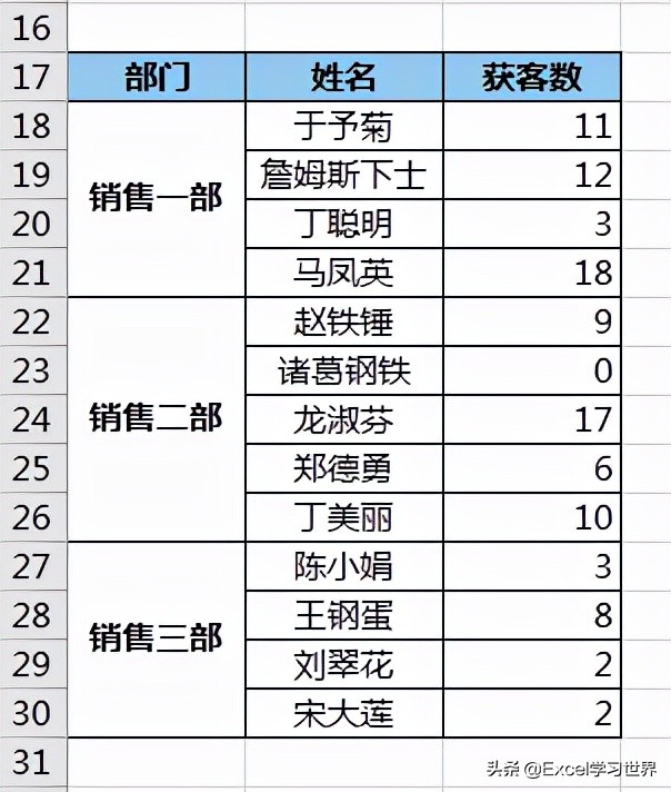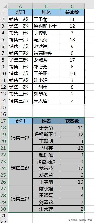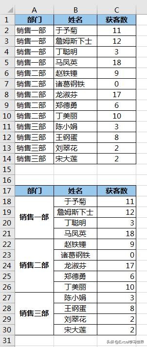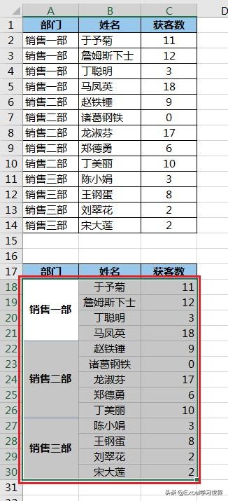 现在的部门顺序跟原始的表格并不一致,我们还需要重新调整一下。