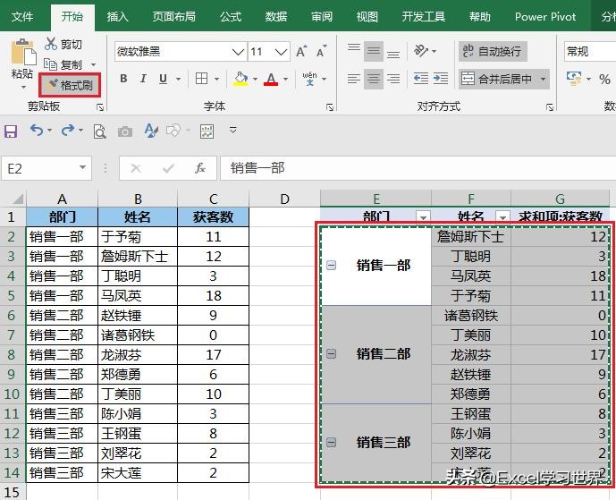 11. 用格式刷将数据透视表的非标题区域的格式复制过来。