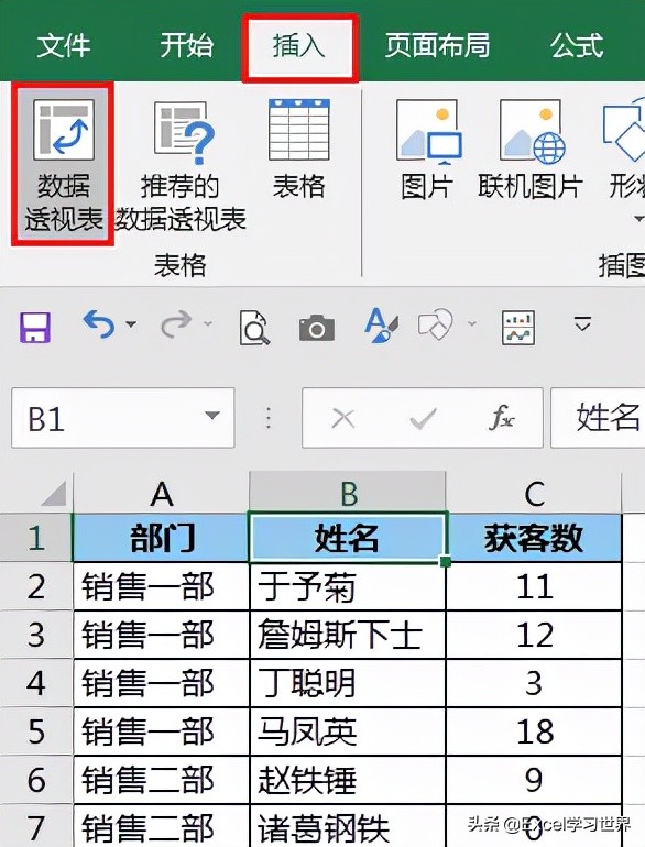1. 选中数据表的任意单元格 --> 选择菜单栏的“插入”-->“数据透视表”