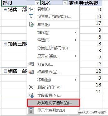7. 选中数据透视表的任意单元格 --> 右键单击 --> 在弹出的菜单中选择“数据透视表选项”