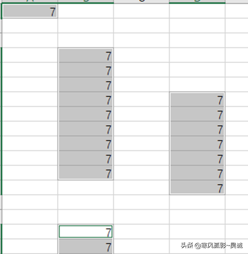 在录入数据的时候,我们已经知道一些区域需要相同数据,尤其是不连续区域,我们通常会鼠标配合键盘一个一个地方输入,现在就可以使用Ctrl+Enter组合进行相同的数据录入(首先选中需要输入相同数据的各个区域,然后再最后一次选择第一个表格中就可以输入内容,最后Ctrl+Enter组合键就可以自动填充选中区域了),效果如下图。