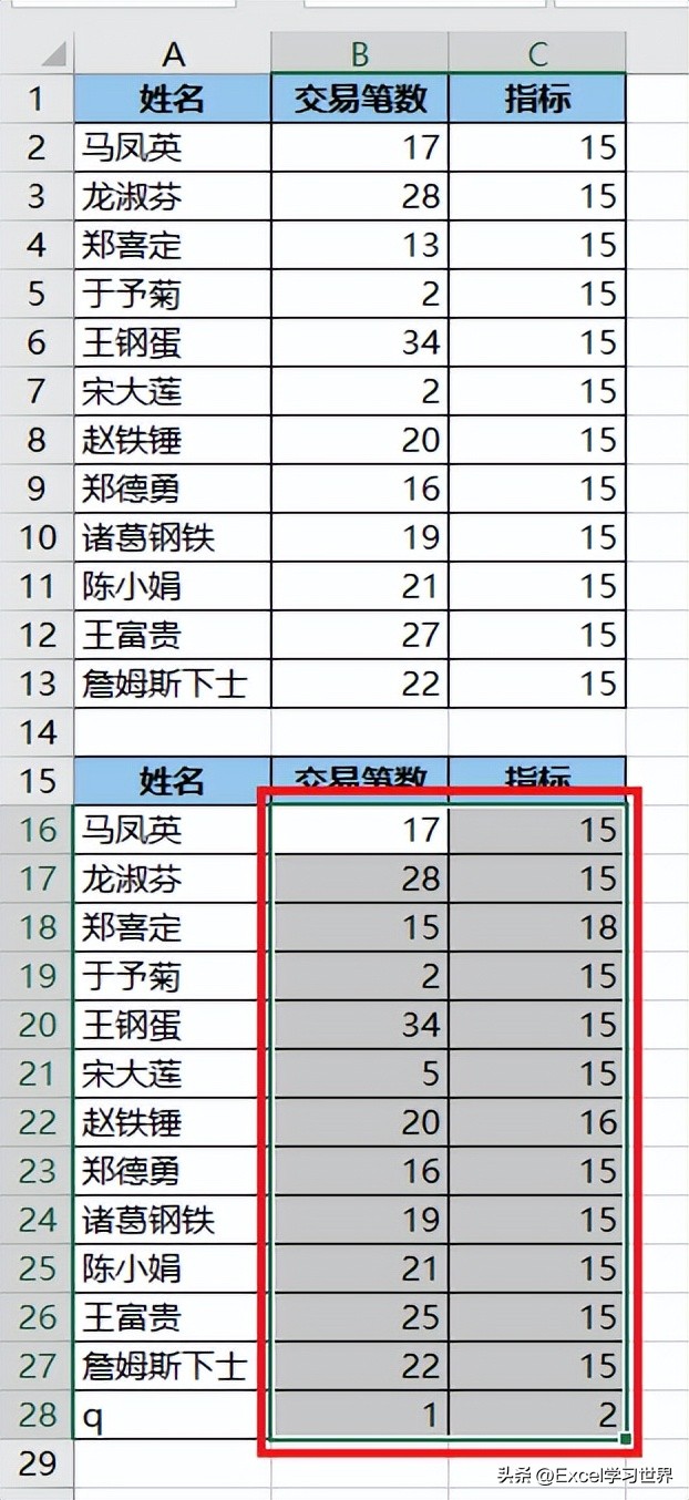 6. 选中 B16:C28 区域