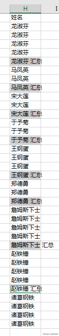 10. 选中并复制数据透视表的“姓名”列中如下图中红框所示的区域