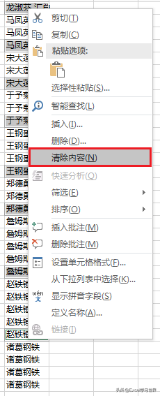 14. 右键单击,在弹出的菜单中选择“清除内容”