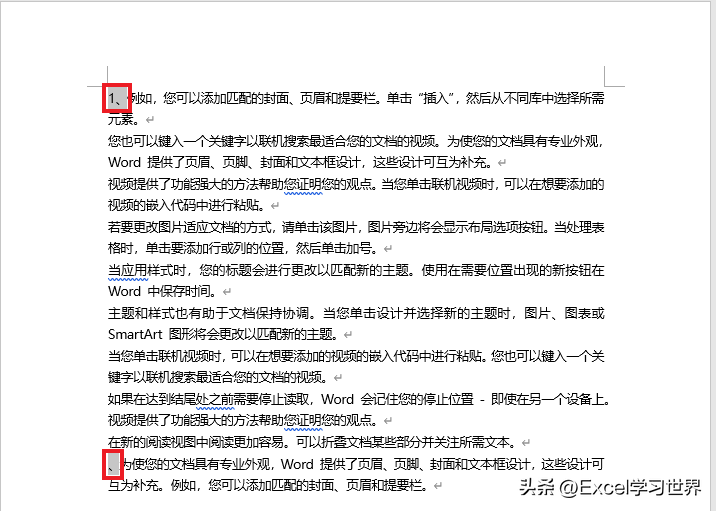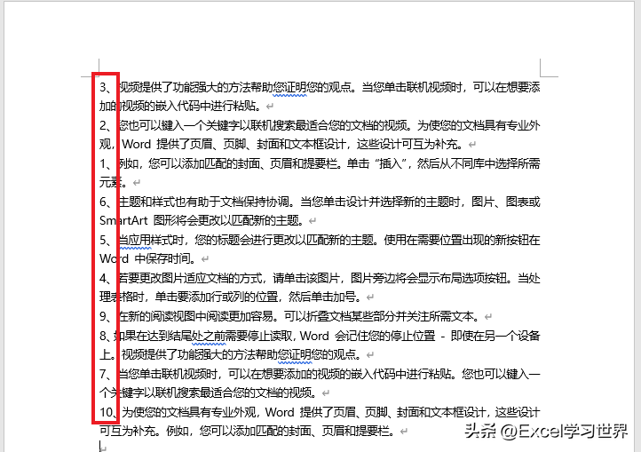 1. 按照需要排序的顺序,在每个段落前面加上编号。