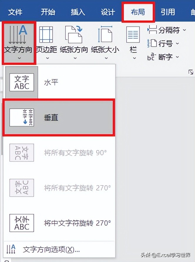 1. 全选所有文字 --> 选择菜单栏的“布局”-->“文字方向”-->“垂直”