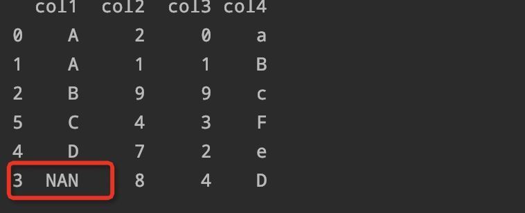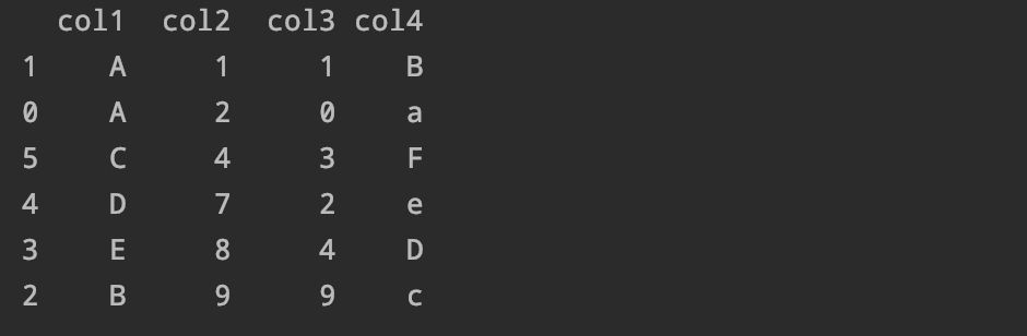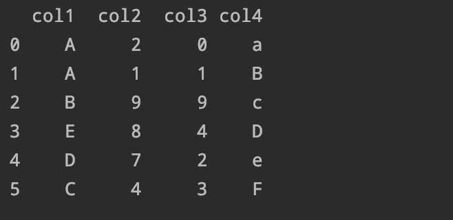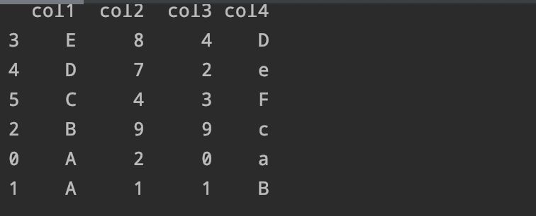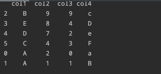排序结果如下,我们会发现它是将'col2'列进行了升序排序,那么如果我们想要降序排序怎么办呢?