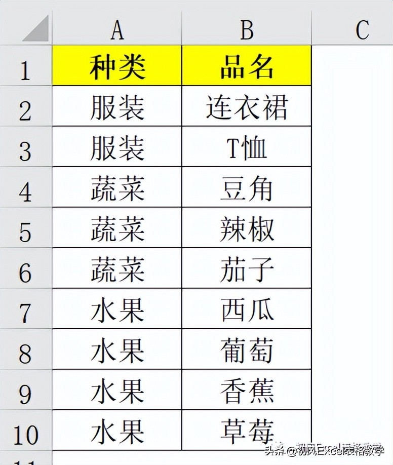 筛选后的C列数据就是按“种类”分组后的结果。