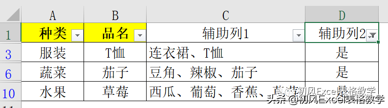 4、筛选“辅助列2”中单元格内容为“是”,如下图所示: