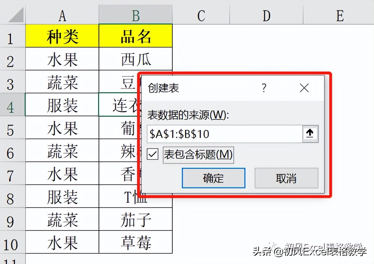 1、选中数据源中的任意单元格,单击【数据】-【来自表格/区域】,在弹出的【创建表】对话框中,单击“确定”。